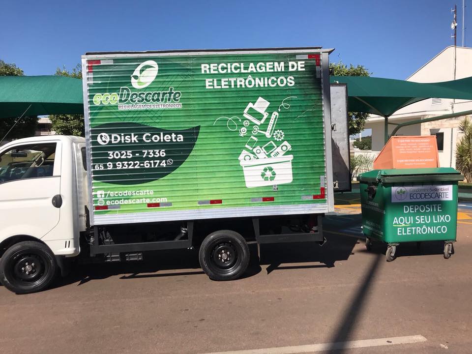 Coleta gratuita em Cuiabá e região, com agendamento via WhatsApp e atendimento em até 72h, conforme o volume dos materiais.